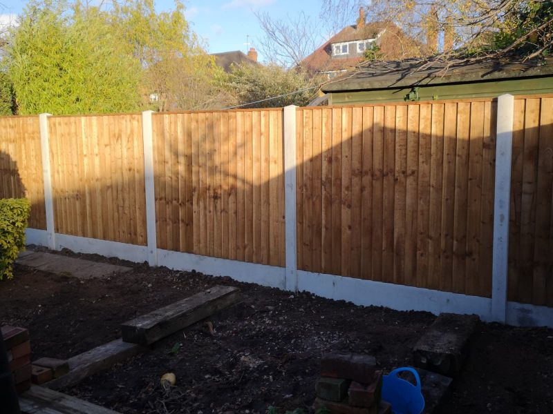 Products used are high quality solid pre treated wooden panels, concrete gravel boards and concrete posts.