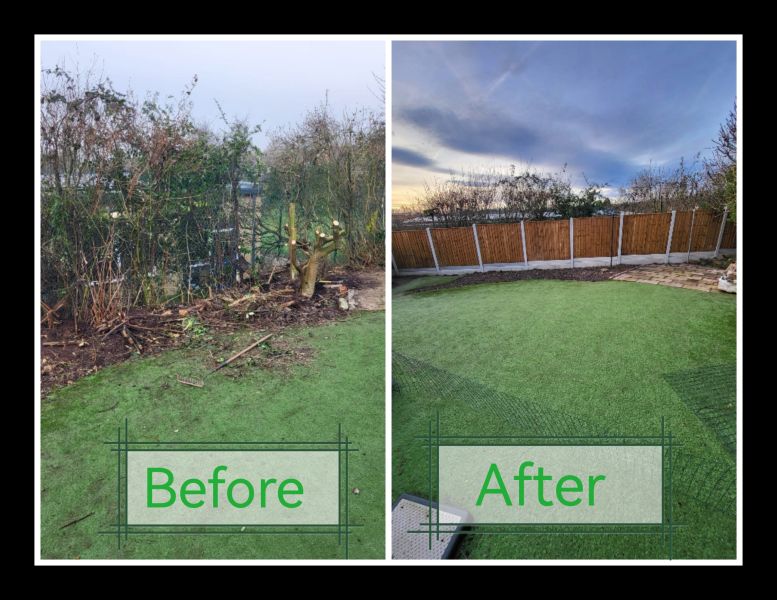Removal of shrubs, trees and hedge and supply and installation of fencing consisting of concrete gravel boards, concrete posts and solid Featheredge panels supplied by Featheredge Timber Ltd to a domestic property in Arnold Nottingham.
